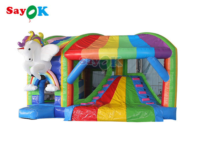 Rainbow Kids استفاده شده Commercial Bounce House Castle Inflatable Jumping Castle Unicorn Bouncy Castle with Slide